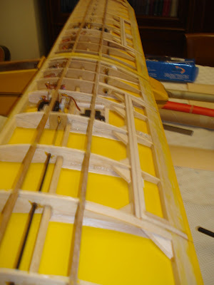 Además he desentelado las alas porque estaba el papel skilpam muy quebradizo y reseco, de modo que he aprovechado para instalar unos flaps para hacer más comoda la aproximación y el aterrizaje.